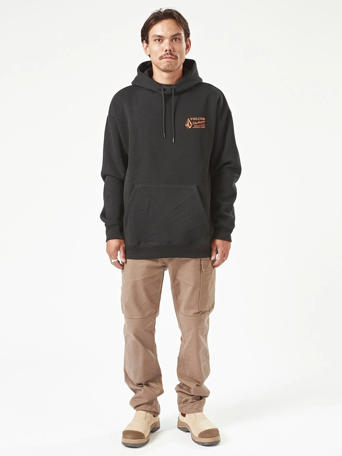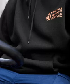 Soft brushed fleece and a relaxed fit bring casual comfort to this Volcom pullover hoodie. Classic front and back screen-printed graphics, plus branded metal trims deliver the ultimate in streetwear-inspired style.