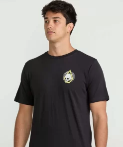 A stylish staple with all-day comfort. Soft heathered blend keeps you cool; modern fit flatters. Lived-in screen print graphic; subtle branding details.
