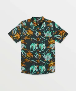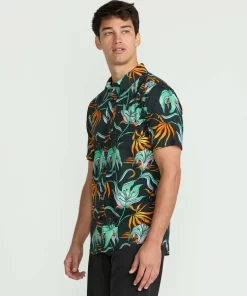 Casual cool gets a bold bloom in this soft cotton-viscose blend button-up, bringing vibrant florals and classic branding details to your summer uniform.