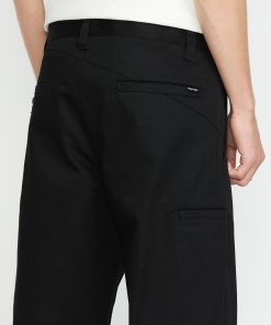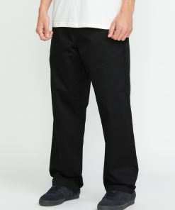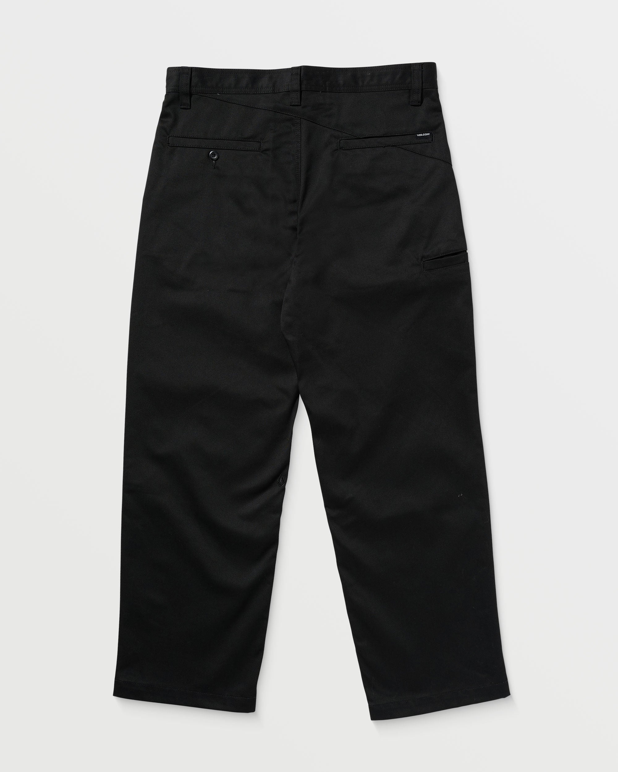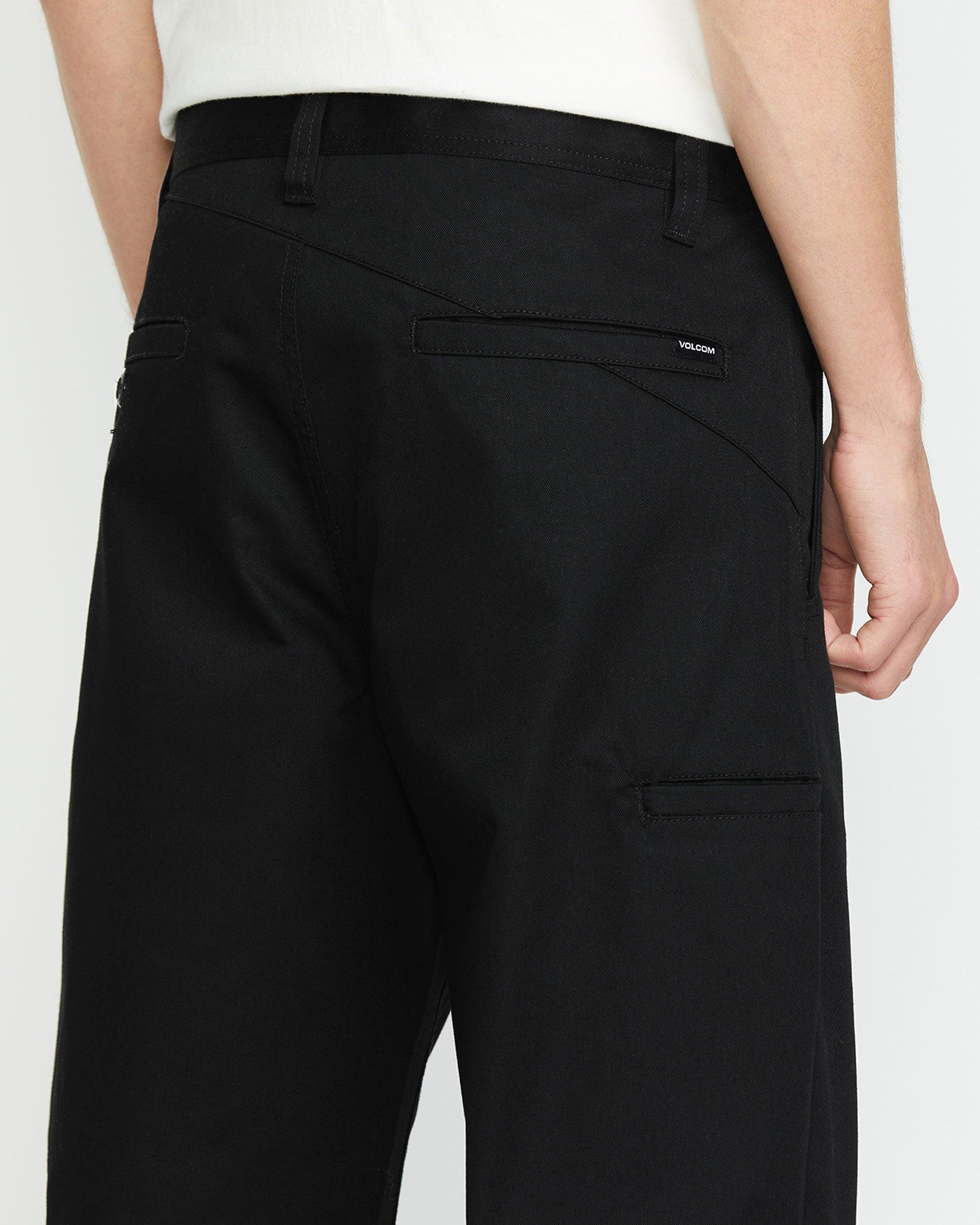 Twill ease meets cool asymmetry in these tapered Volcom chinos. A relaxed, lived-in cotton-poly blend with angled back flashes and welt pockets for chill style.