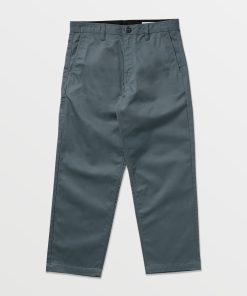 Twill ease meets cool asymmetry in these tapered Volcom chinos. A relaxed, lived-in cotton-poly blend with angled back flashes and welt pockets for chill style.