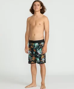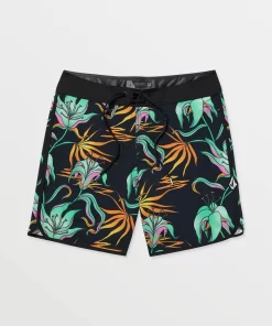 Polyester-elastane blend trunks with 19" outseam-perfect for surfing, swimming or beach lounging. Quick-drying, 4-way-stretch fabric with cinch fly stays put while back pocket stashes essentials. Signature Volcom style.