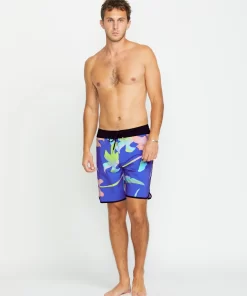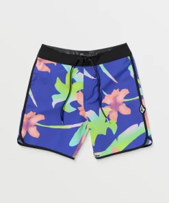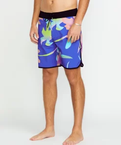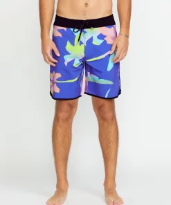 Polyester-elastane blend trunks with 19" outseam-perfect for surfing, swimming or beach lounging. Quick-drying, 4-way-stretch fabric with cinch fly stays put while back pocket stashes essentials. Signature Volcom style.