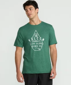 A heathered cotton-poly blend tee with a modern fit. Soft crackle ink graphics, interior-exterior branded details. Elevated yet easygoing style.