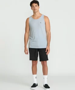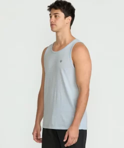 This modern, fitted tank blends casual comfort and sleek style through a soft heather knit blend fabric and clean binding details at the neck and armholes for an elevated finish.