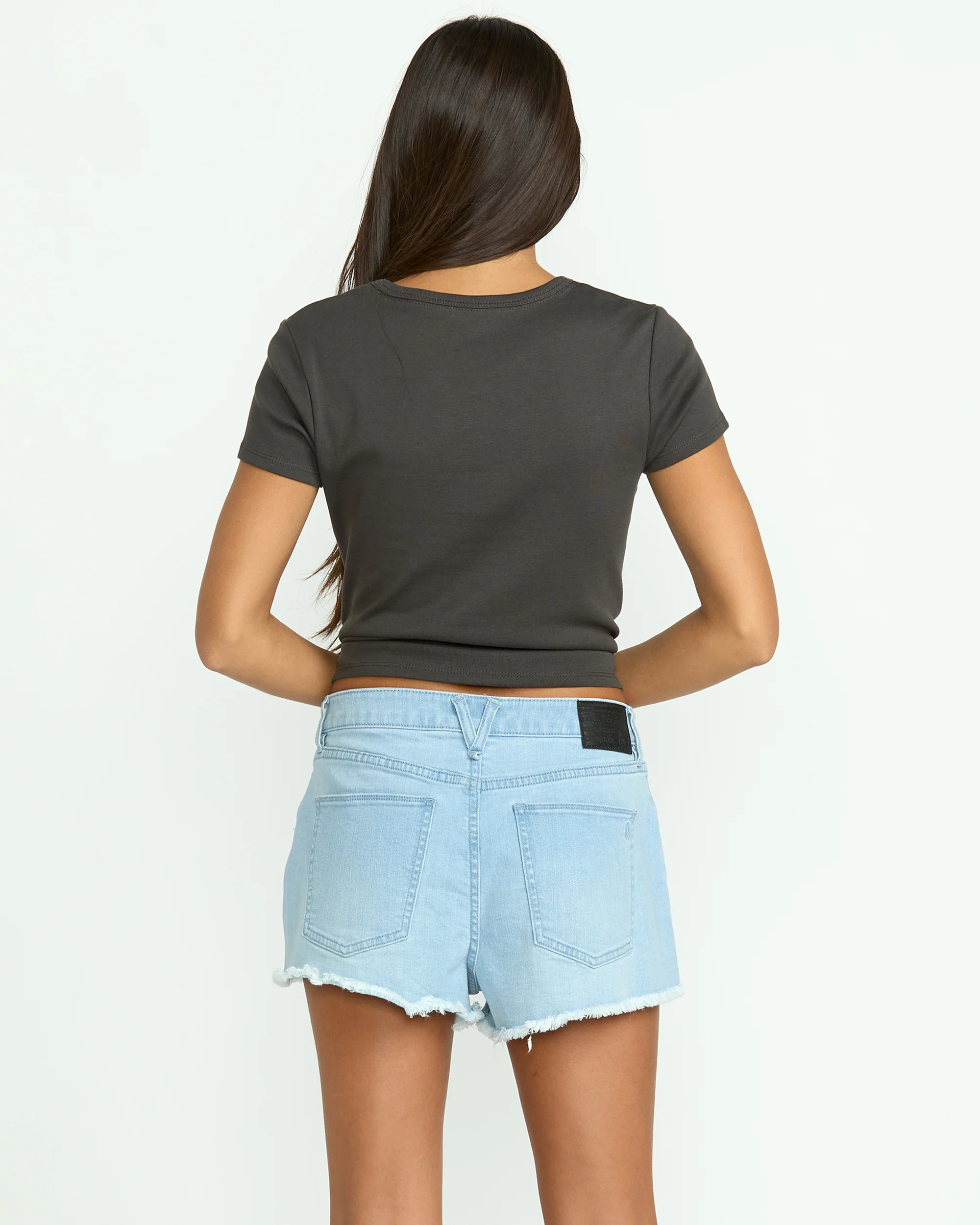 Channel vintage vibes in these slouchy high-waisted denim shorts with a zipper fly, Volcom’s branded coin pocket, and a soft, stretchy cotton-poly blend for all-day comfort.