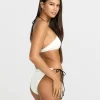Flaunt sustainably chic beach style in this sleek halter tri bikini top, crafted from an eco-friendly recycled polyester blend. Adjustable for the perfect fit, it features removable cups for customizable coverage and a modern metal accent rivet.