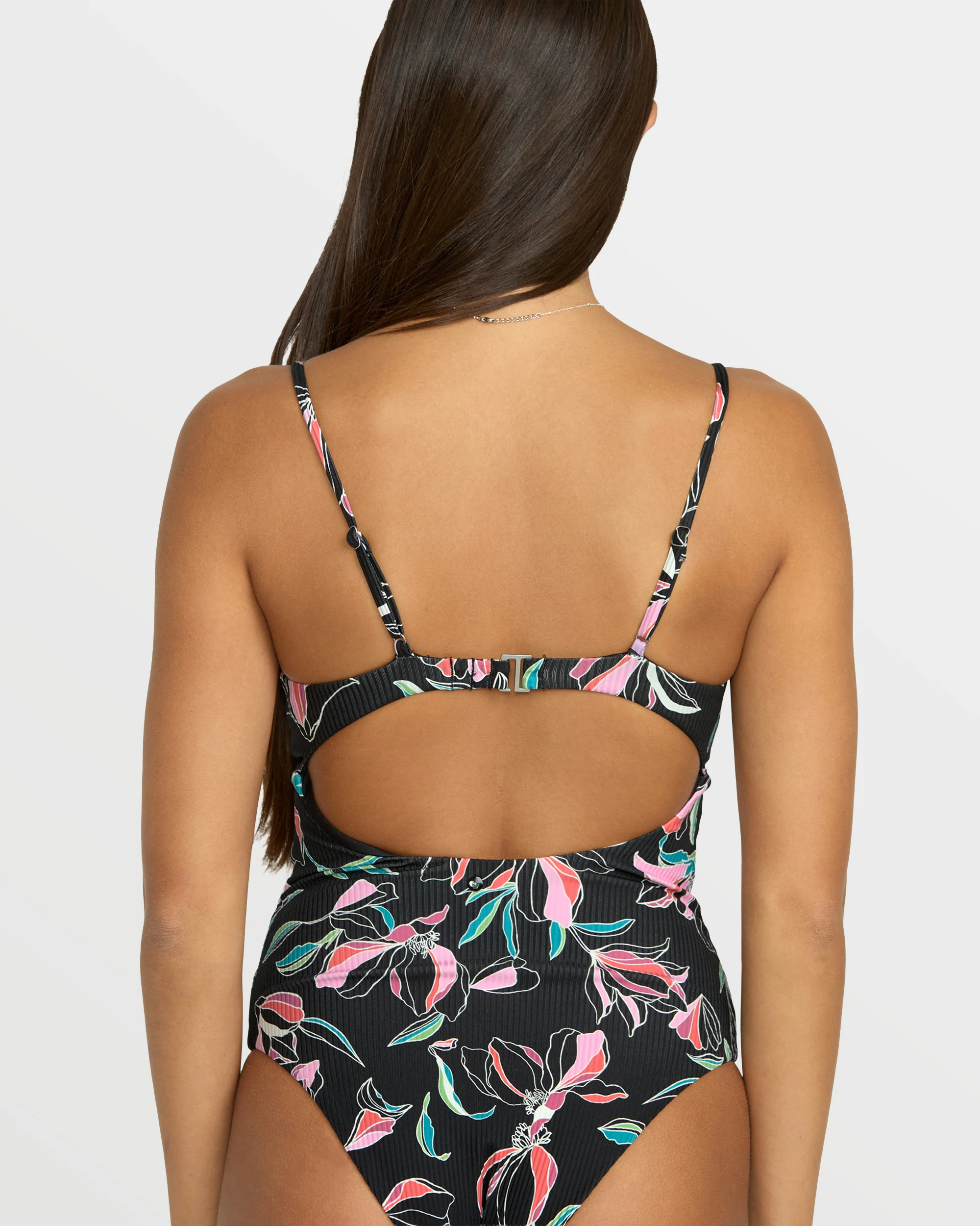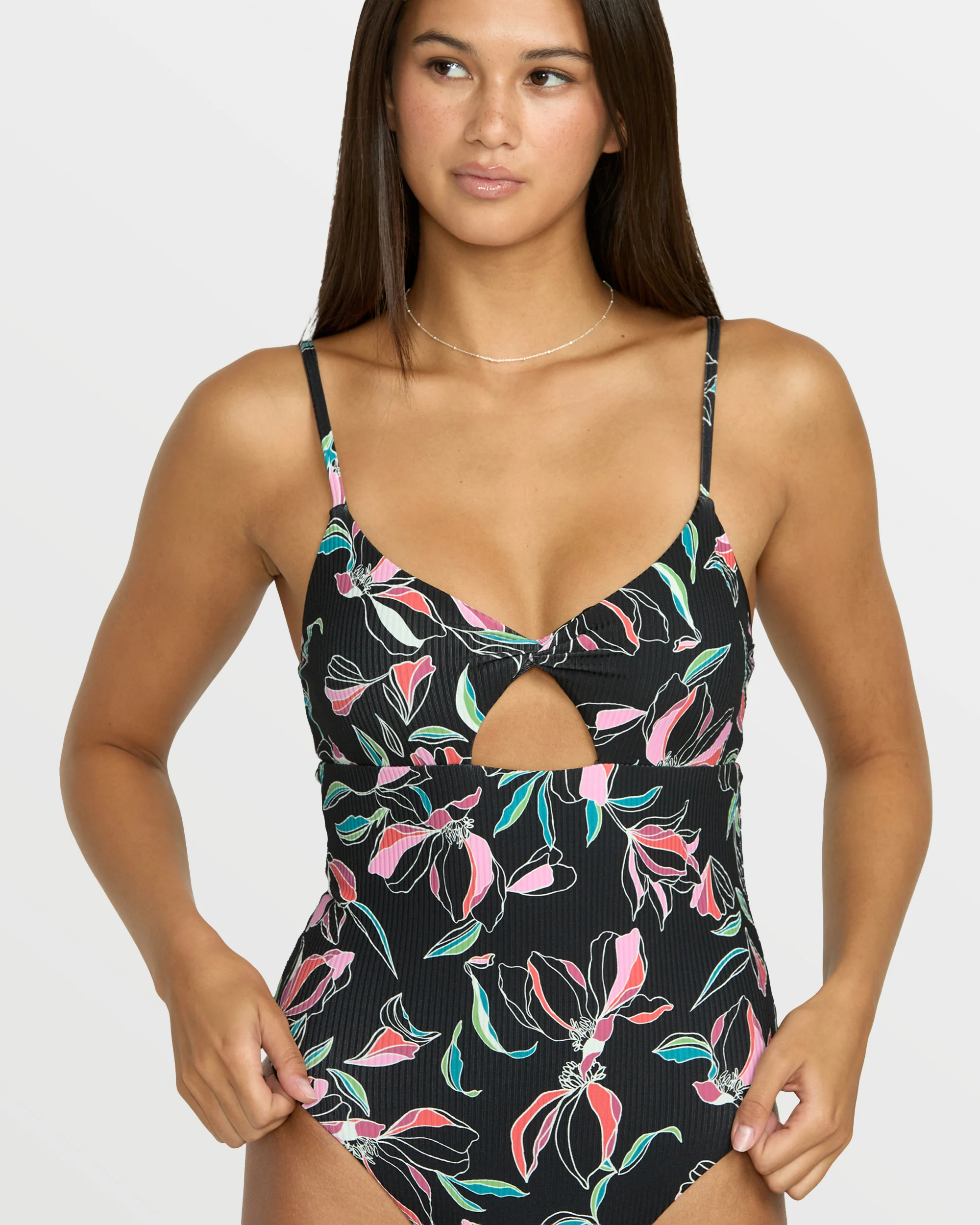 Dream In Bloom Twist One Piece’s recycled nylon blend sculpts curves. Twist front, removable cups, adjustable straps. Dream In Bloom Twist One Piece minimally covers but maximizes style.