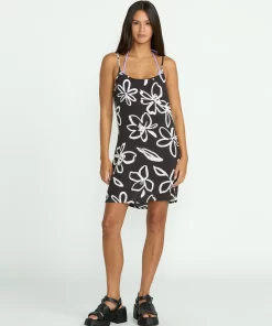 With its flirty spaghetti straps, hand-drawn floral print and Volcom metal badge, this airy viscose gauze mini dress brings relaxed femininity to warm days.
