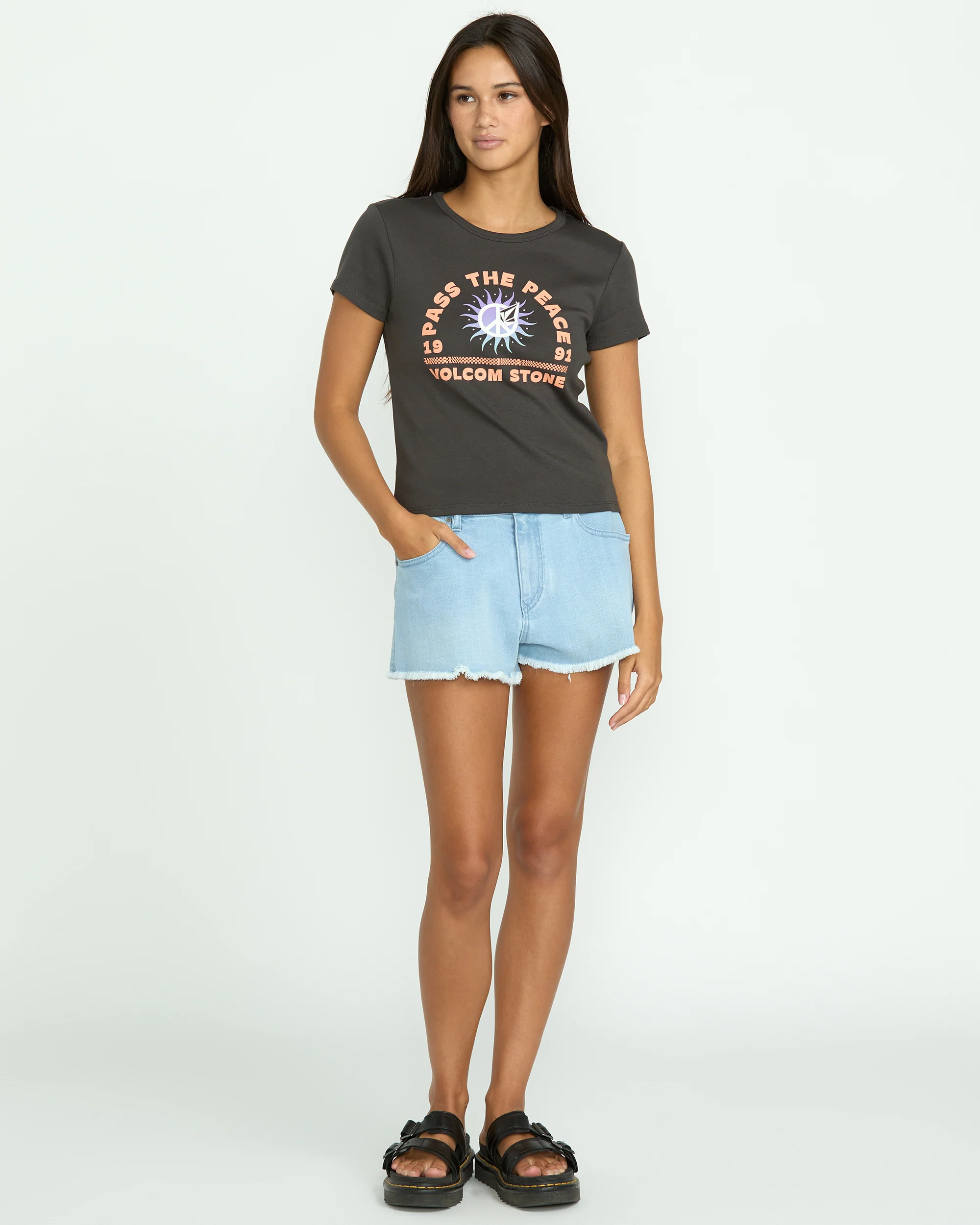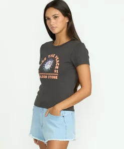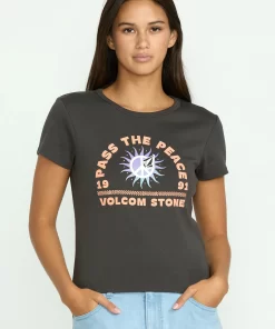 Decked in supersoft 100% cotton, this fitted VOLCOM baby tee has all the answers with its cheeky screen-printed chest graphic and cool striped interior neck taping. Have a clue? You will in this cozy, stylish essential.