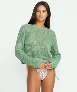 Effortless mesh sweater crafted from a soft, breathable cotton-poly blend. Relaxed pullover silhouette in an open knit with subtle branded badge. Breezy, versatile layering piece.