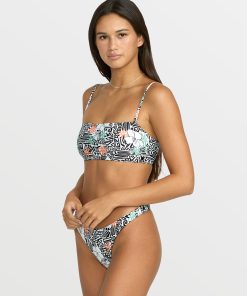 Reversible recycled blend bandeau styling meets removable, adjustable straps. Metal-riveted back detailing elevates this versatile Volcom Sol Rebel bikini top.