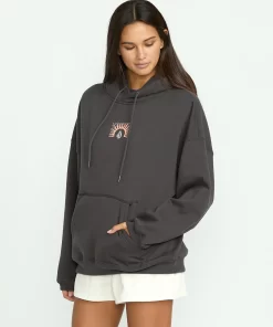 Vintage vibes meet streetwear edge in this oversized, brushed fleece blend hoodie with dropped shoulders, stylish snow wash, and bold screen prints.